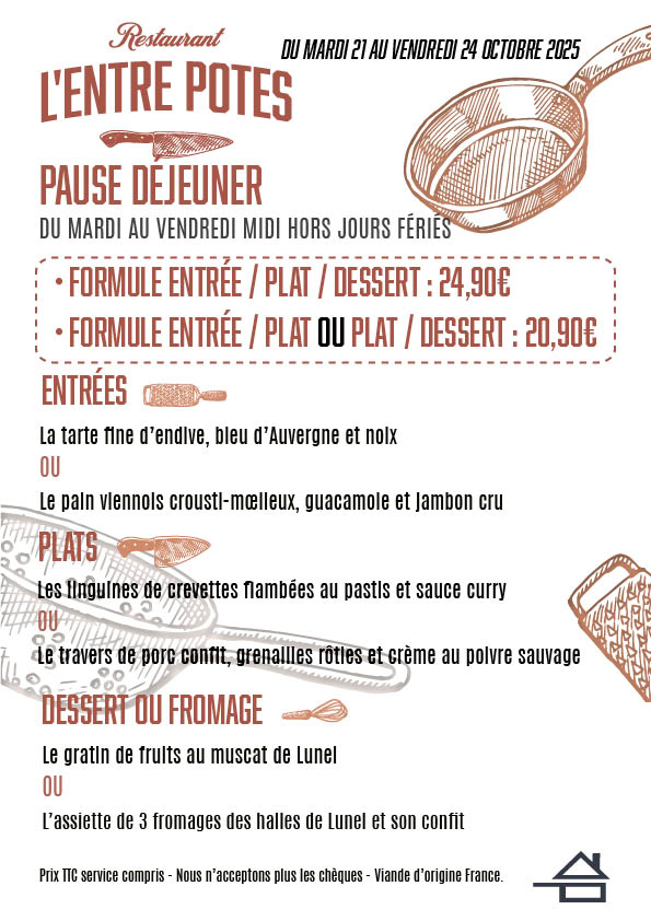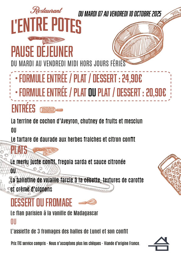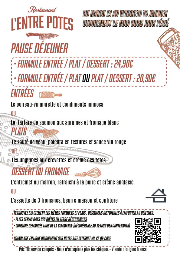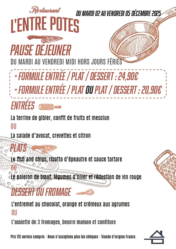 Découvrez notre carte du moment et la formule déjeuner de la semaine