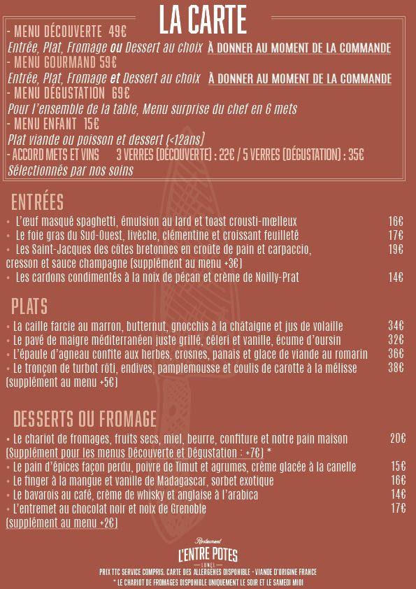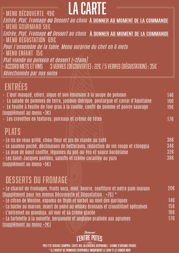 Entre Potes, En Famille, le lien entre nous est fondamental à la création et à l’avancée du restaurant. Travaillant de longues dates ensemble dans divers établissement, la complicité est à l’honneur pour la transmission de passion et d’émotion auprès de nos convives. Ici, ça transpire la rigueur du travail bien fait, le bonheur du compliment et l’amour de la gastronomie.